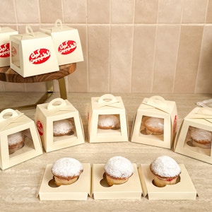 12 pieces of our signature cup cakes with a blend of raspberries and vanilla topped with cheese cream. 12 pieces of our signature small cupcakes with a blend of raspberries and vanilla topped with cheese cream. Assorted selection of Victoria Nutella and Victoria with white chocolate served in skewers.