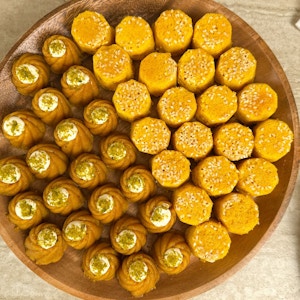 Short bread cookies baked using a blend of semolina and rich butter, stuffed with dates.