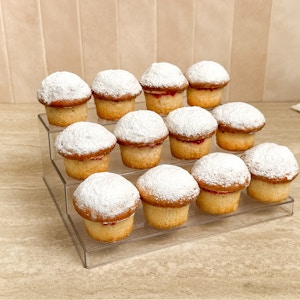 12 pcs of our signature mini cup cake with a blend of raspberries and vanilla topped with cheese cream