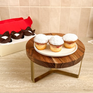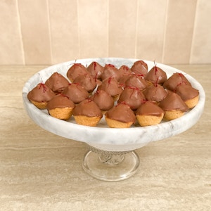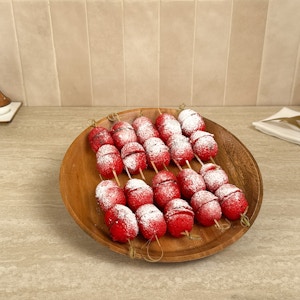 12 pieces of our signature cup cakes with a blend of raspberries and vanilla topped with cheese cream. 12 pieces of our signature small cupcakes with a blend of raspberries and vanilla topped with cheese cream. Assorted selection of Victoria Nutella and Victoria with white chocolate served in skewers.