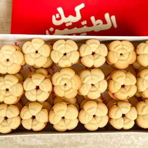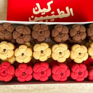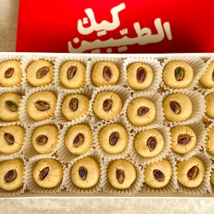 1.Very light traditional shortbread butter cookies topped with peeled pistachio. 2. Shortbread cookies baked using rich butter and nutmeg, stuffed with dates. 3. Shortbread cookies baked using a blend of semolina and rich butter, stuffed with dates.