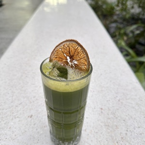 ceremonial grade matcha, fresh cream, organic tender coconut water