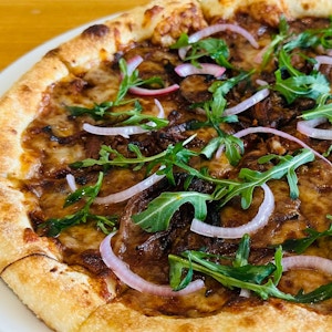 brisket beef, mozzarella cheese, barbeque sauce, tomato sauce Contains: gluten, dairy