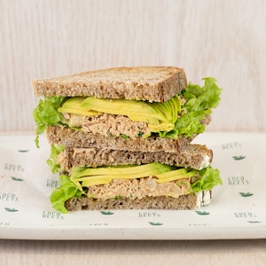 White Tuna Mix, Tomatoes, Avocado, Lettuce, Sourdough Bread, Sriracha Spread - Contains Fish, Gluten. | مزيج تونة بيضاء ، طماطم ، أفوكادو ، خس ، خبز سوردو ، سريراتشا صوص يحتوي على الغولتين و الأسماك 580 Kcal