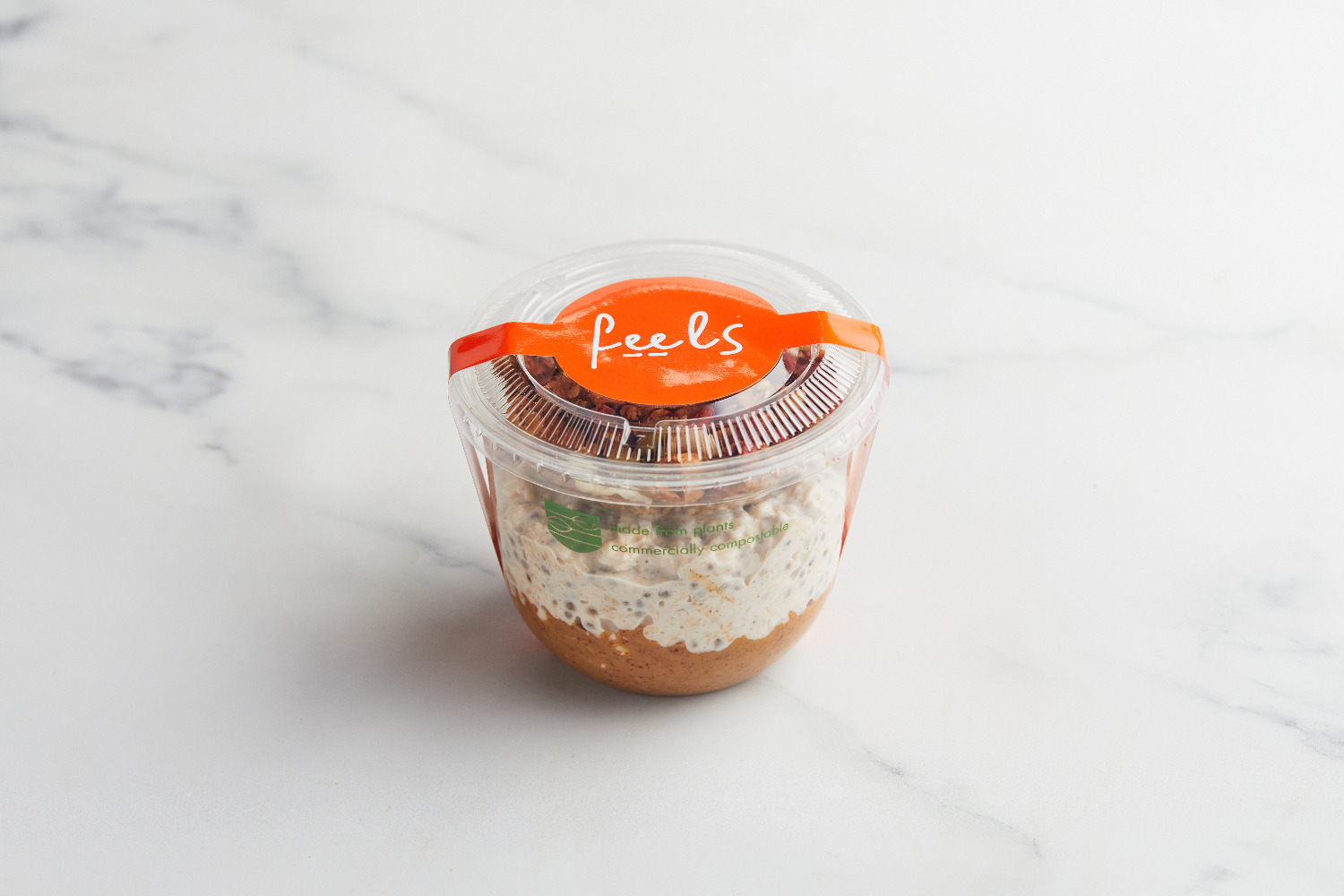 oats, almond butter,greek yogurt, chia seeds, cinnamon powder, coconut milk, maple syrup - 355 KCAL