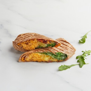Free- range eggs, caramelized onion, sun-dried tomatoes, organic cheddar, rocket leaves in wholegrain wrap - 270KCAL