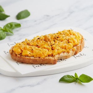 Free-range scrambled eggs, organic cheese, dried basil - 320 Kcal