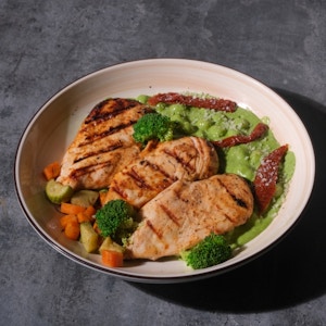 grilled chicken breast, sautéed veggies ,gnocchi of your choice, garnished with sundried tomato.