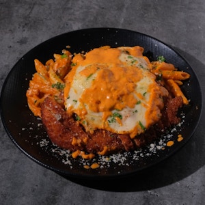 Penne pasta, sautéed mushrooms, basil, truffle paste, truffle oil, fresh cream, and parmesan