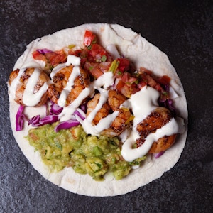 grilled chicken cheddar cheese, mozzarella cheese, mixed bell pepper, fresh mushroom, guacamole, salsa and sour cream