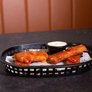 Golden Crispy Mozzarella Sticks of your choice of plain, bbq, buffalo, or honey mustard