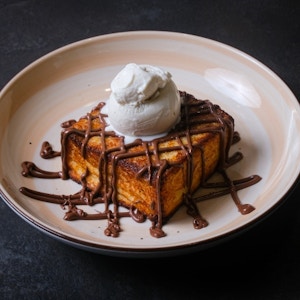 toast brioche tossed in home made sweet sauce, drizzled with your choice of chocolate, or caramel served with a scoop of vanilla ice cream