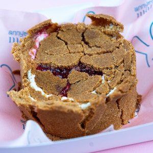 Soft scrambled organic egg, Mushrooms in a brioche bun with cheese.