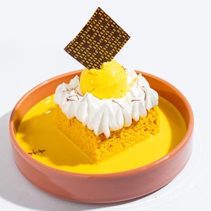 Honey soft sponge, honey mousse, vanilla syrup, vanilla ice cream.