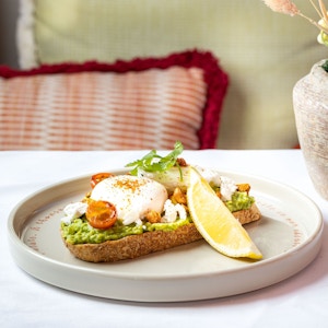 Avocado, feta, lemon, poached organic egg, roasted cherry tomato, crushed granola with togarashi mix grains, grill Multigrain Bread.