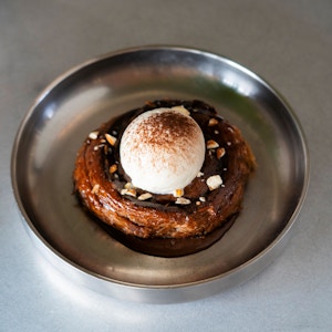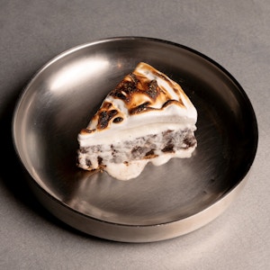 Decadent layers of almond crumbled, rich chocolate, homemade vanilla ice cream, and torched fluffy marshmallow. Finished with a generous milk chocolate sauce on the side.