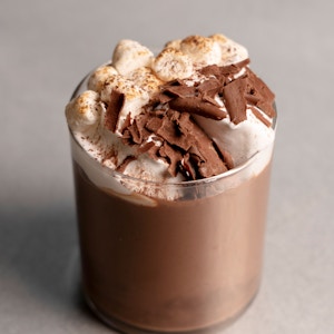 Blend of dark and milk chocolate infused with a hint of sea salt and full cream, top with two scoops of pastry cream, chocolate shavings and torched marshmallow.