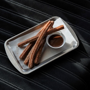 Golden, crispy pumpkin & earl grey-infused churros dusted with fine sugar powder, served warm with a rich, velvety chocolate dipping sauce.