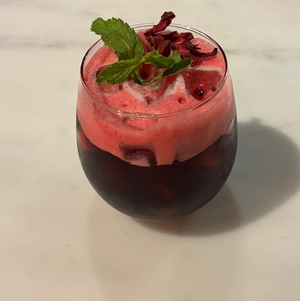 كركديه طبيعي مُنعش، ممزوج بعصرة ليمون خفيفة ولمسة من روح البرتقال، يقدم باردًا بطابع زهرّي فريد وطعم متوازن بين الحموضة والانتعاش. Natural hibiscus tea with a hint of lemon and a touch of orange essence — served chilled with a floral, refreshing twist. 65 cal