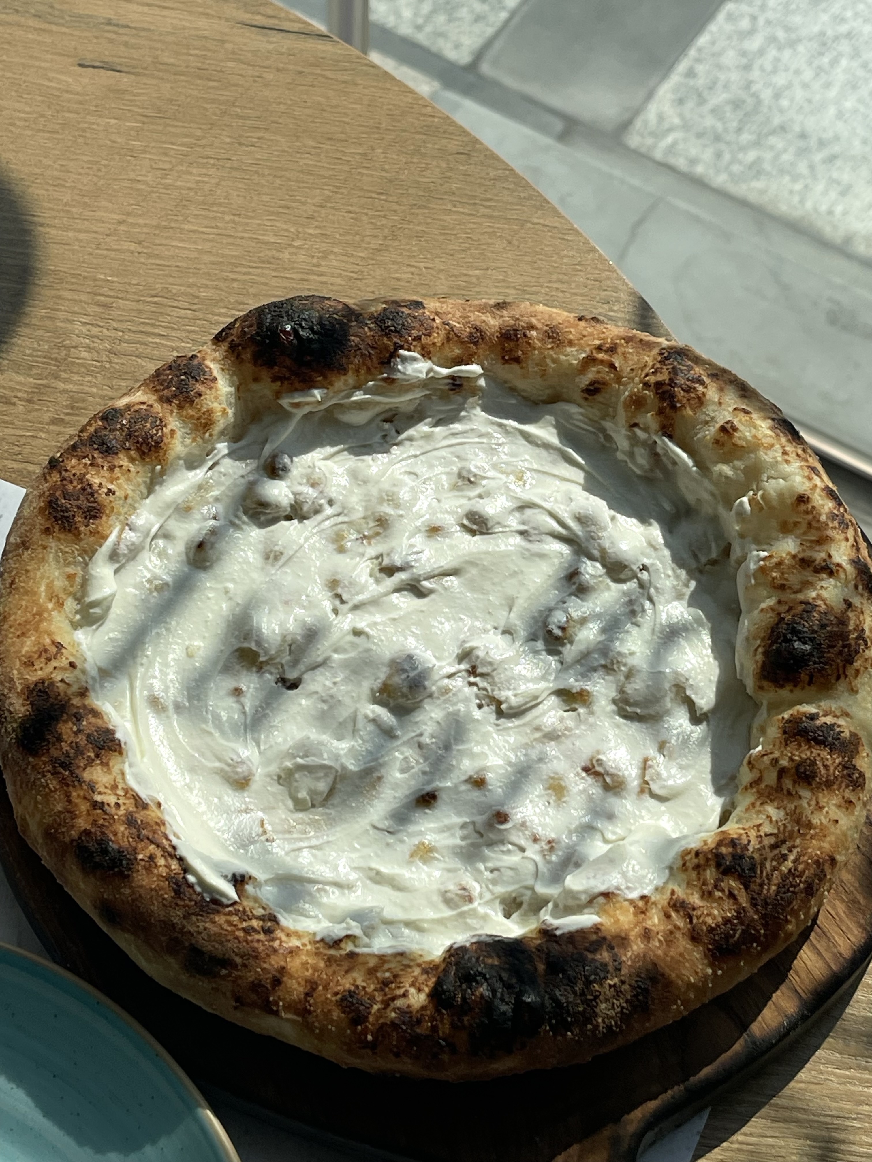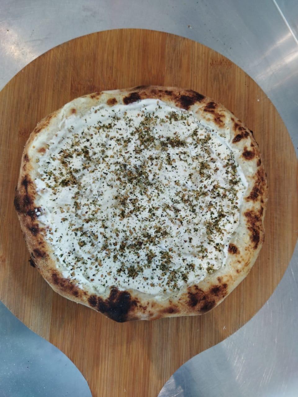 Fresh wooden baked labneh with za’atar mankoushe - منقوشة لبنة مع زعتر مخبوزة على الحطب