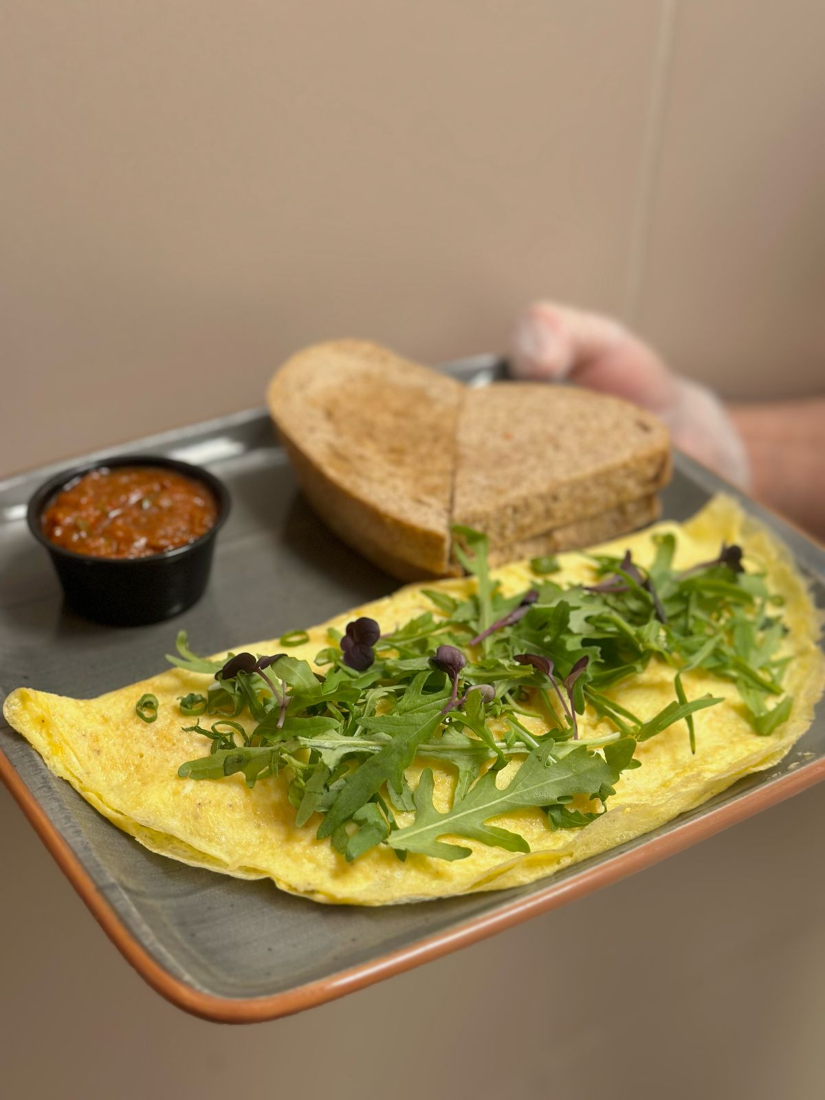 Filled with cheddar and mozzarella cheese, mushrooms, onions, tomatoes, and bell peppers NOTE you can add mashed avocado for 2 sr. - الاومليت المحشي بجبنة الشيدر والموزاريلا و الفطر,البصل ,الطماطم ,والفليفلة و المقدمه مع الافوكادو المهروسة وصلصة الطماطم (بإمكانكم اضافة الافوكادو ب ٢ ريال ) Cal 352 السعرات الحرارية